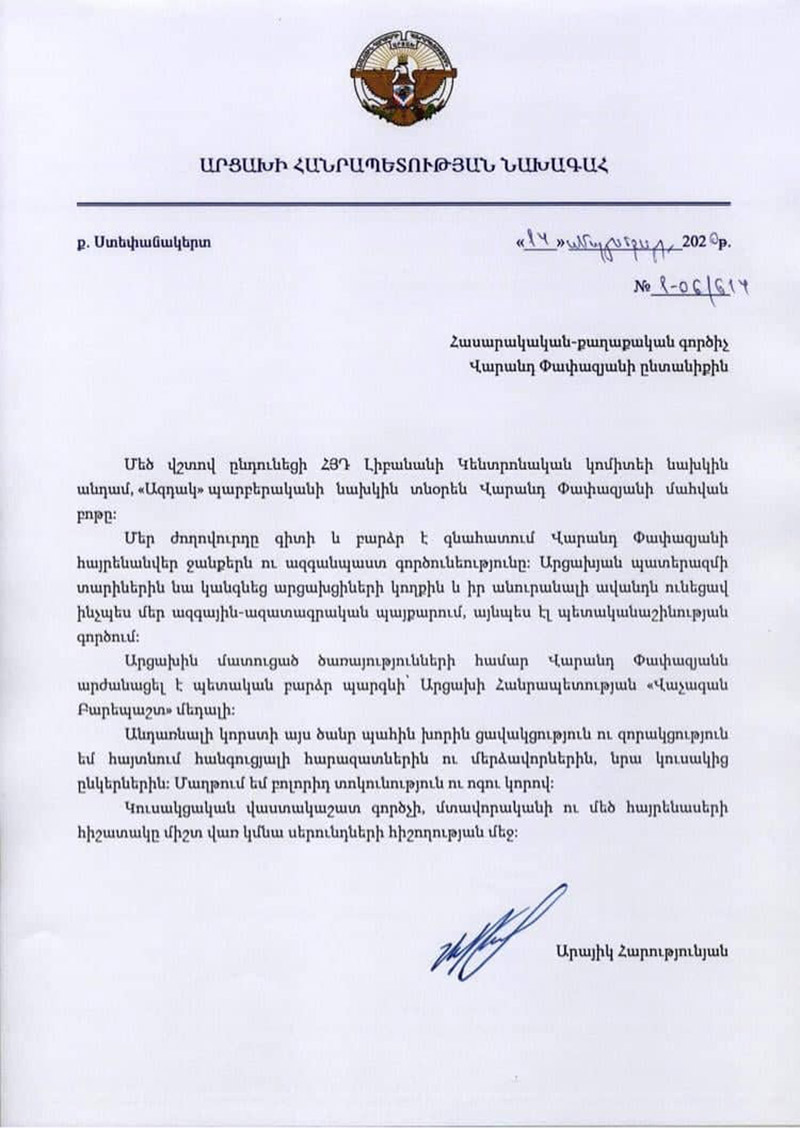 <a href="https://www.aztagdaily.com/wp-content/uploads/2020/09/Papazyan_Arayik_91420.jpg"><img class="aligncenter size-full wp-image-483224" src="https://www.aztagdaily.com/wp-content/uploads/2020/09/Papazyan_Arayik_91420.jpg" alt="" width="800" height="1128" /></a>