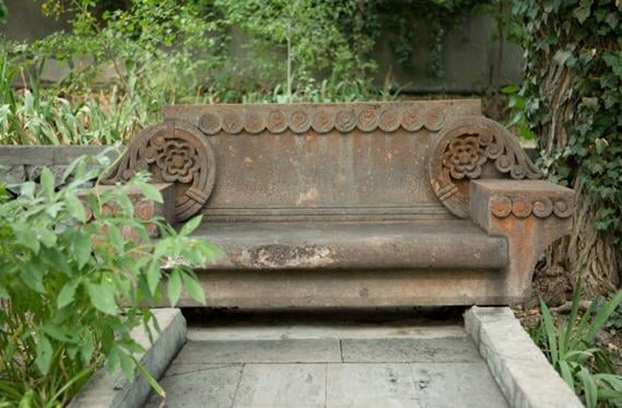Օրին մէկը Աւետիք Իսահակեան Յովհաննէս Թումանեանի աղջկան` Թամարին կը յայտնէ պարտէզին մէջ նստարան ունենալու իր ցանկութիւնը: Թամարը, որ մասնագիտութեամբ ճարտարապետ էր, կը դիմէ Հայաստանի Ճարտարապետներու միութեան, որ իր կարգին Ռաֆայէլ Իսրայէլեանի նախագիծով տուֆակերտ նստարան մը կը նուիրէ մեծ վարպետին:
