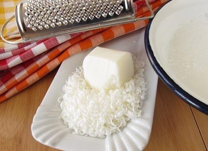 Օճառները քերոցէ անցընել եւ վրան տաք ջուր աւելցնել: 8-էն 10 կտոր օճառին շուրջ 1 լիթր ջուր: