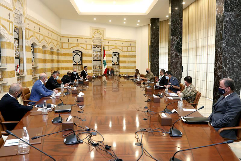 Միւս կողմէ, նախագահ Աուն երէկ նախագահական պալատին մէջ նախագահեց ապահովական նիստի մը, որուն ներկայ գտնուեցան հրաժարեալ վարչապետ Հասսան Տիապ, փոխվարչապետ, պաշտպանութեան նախարարի պաշտօնակատար Զէյնա Աքր, ներքին գործոց նախարարի պաշտօնակատար Մոհամետ Ֆահմի, լիբանանեան բանակի հրամանատար զօր. Ժոզեֆ Աուն, հանրապետութեան նախագահութեան ընդհանուր տնօրէն Անթուան Շքէյր, նախարարաց խորհուրդի ընդհանուր քարտուղար, դատաւոր Մահմուտ Մաքքիէ, Ընդհանուր ապահովութեան ընդհանուր տնօրէն Ապպաս Իպրահիմ, Ներքին ապահովութեան ուժերու ընդհանուր տնօրէն հազարապետ-զօրավար Իմատ Օսման, Պետական անվտանգութեան ընդհանուր տնօրէն հազարապետ-զօրավար Անթուան Սալիպա, նախագահ Աունի ապահովական եւ զինուորական հարցերու խորհրդատու գնդապետ-զօրավար Պուլոս Մաթար եւ լիբանանեան ծովուժի հրամանատար գնդապետ-զօրավար Հայսամ Տաննաուի: