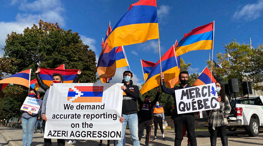 10 հոկտեմբերի յետմիջօրէին, Մոնրէալի հայ համայնքը աւելի քան հազար ինքնաշարժներու եւ ճեպանիւներու շարասիւնով մը բողոքի արշաւ մը կազմակերպեց ի զօրակցութիւն Արցախի հայութեան եւ ի դատապարտումն Ազրպէյճանի ու Թուրքիոյ բռնարարքներուն: Ցուցարարներու շարասիւնը յաջորդաբար փակեց Մոնրէալի թրքական հիւպատոսարանի եւ «Սի.Թի.Վի.» ու «Էլ.Սի.Էն.» պատկերասփիւռի կայաններու ճամբաները: