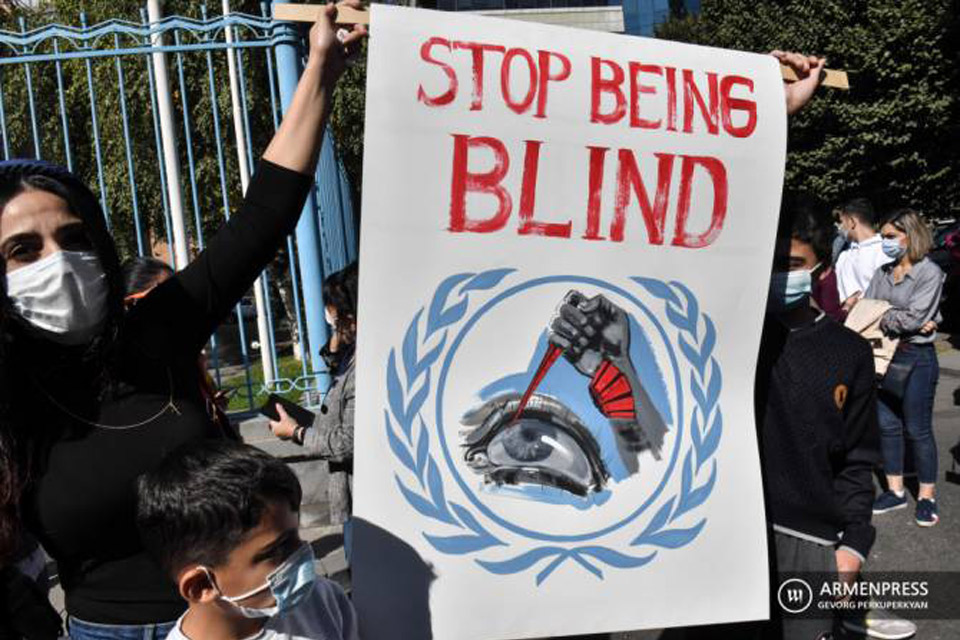 ՄԱԿ-ի հայաստանեան գրասենեակին մօտ խումբ մը քաղաքացիներ բողոքի ցոյց կազմակերպեցին` պահանջելով անտարբեր չըլլալ Արցախի մէջ տեղի ունեցող դէպքերուն նկատմամբ ու յստակ քայլերու ձեռնարկել Ազրպէյճանի կողմէ սանձազերծած յարձակումը դադրեցնելու ուղղութեամբ: