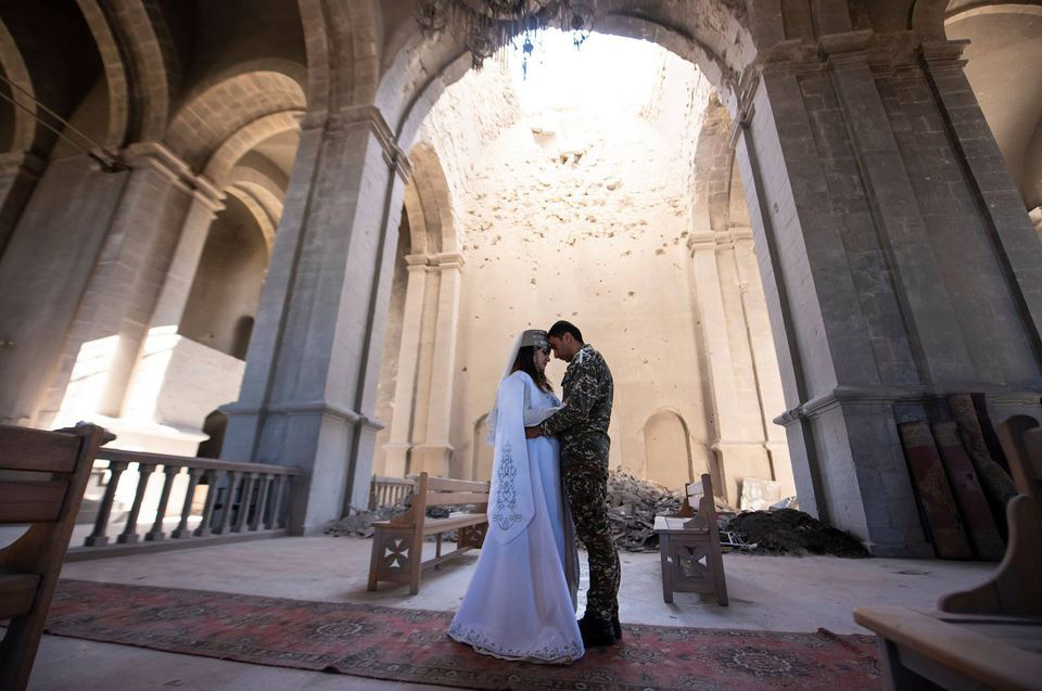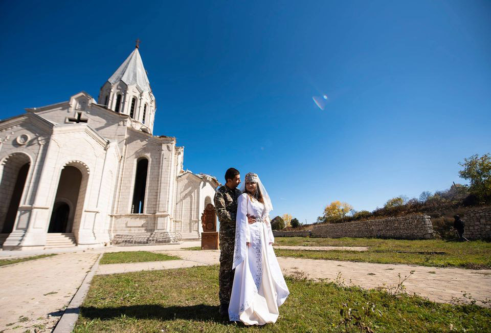 Ի հեճուկս պատերազմի, թուրք-ազրպէյճանական վայրագութիւններուն` Արցախի մէջ կեանքը կանգ չառաւ. Շուշիի Ղազանչեցոց Սուրբ Ամենափրկիչ եկեղեցւոյ մէջ տեղի ունեցաւ պսակադրութիւն: Ամուսնացողները լրագրող Մարիամ Սարգսեանը եւ կամաւոր Յովիկ Յովսէփեանն էին: