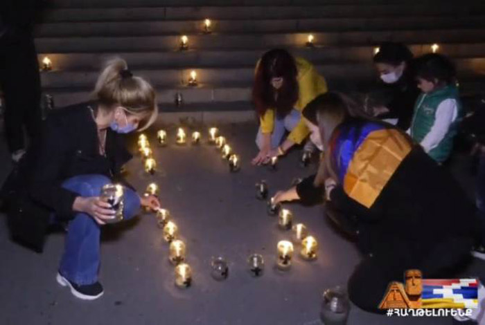 Երեւանի Ազատութեան հրապարակը կազմակերպուած է մոմավառութիւն` Ազրպէյճանի կողմէ Թուրքիոյ եւ միջազգային ահաբեկչական ցանցին աջակցութեամբ, Արցախի նկատմամբ սանձազերծուած պատերազմին պատճառով` առաջնագիծին վրայ զոհուած հայորդիներուն յիշատակին: