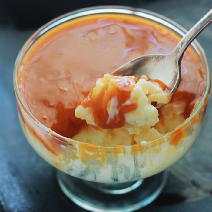 Կանթապուրը եփելէ ետք զայն բաժնել ներկայանալի բաժակներու մէջ եւ երեսը զարդարել քարամելով: Հրամցնել գաղջ վիճակով: