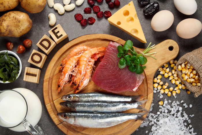 Նշենք, որ իոտով հարուստ մթերքներ են` ծովու աղը, մլուխիէն, ձուկը, հաւկիթին դեղնուցը, այծի պանիրը, խեչափառը, խեցգետինը եւ այլն…