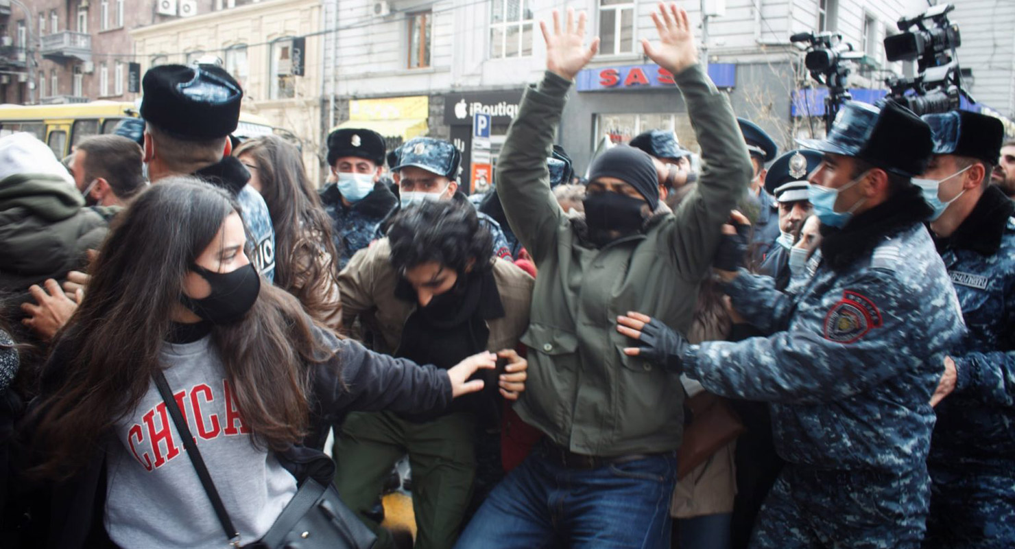 Որոշ ժամանակ ետք ցոյցին մասնակիցները բացին փողոցը եւ ցոյցը շարունակեցին մայթերուն վրայ: Ոստիկաններ վեց քաղաքացիներ բերման ենթարկեցին եւ ցրուեցին խաղաղ ցոյցը: