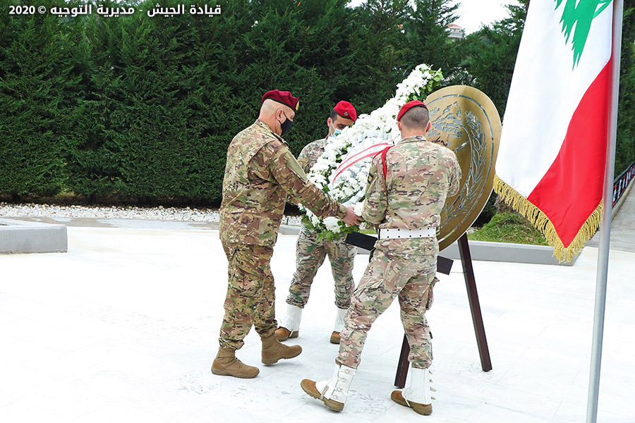 Բանակի հրամանատար զօր. Ժոզեֆ Աուն կիրակի, 22 նոյեմբերին, պաշտպանութեան նախարարութեան մէջ գտնուող լիբանանեան բանակի նահատակներու յուշարձանին ծաղկեպսակ մը զետեղեց` Լիբանանի անկախութեան 77-ամեակին առիթով: