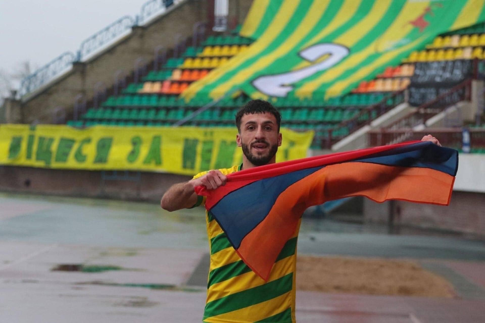 Իր նշանակած այս կոլէն ետք, ան մօտենալով «թրիպիւն», իր նշանակած այդ կոլը հայկական եռագոյնով տօնեց հայ համակիրներուն հետ: