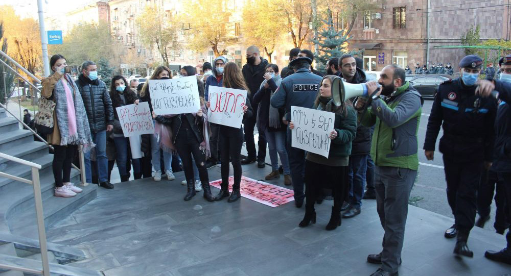 «Կոչ կ՛ուղղենք ընելու ձեր քայլը եւ գալու, միանալու բողոքող ժողովուրդին: Կա՛մ կը կանգնիք պետականութեան կողքին, կա՛մ դաւաճան Նիկոլ Փաշինեանի կողքին: Արդէն փաստ է, որ Նիկոլ Փաշինեանը այդ խայտառակ պայմանագիրով դաւաճանեց ամբողջ ժողովուրդին: Դուք դեռ ժամանակ ունիք, առէ՛ք ձեր քայլը` միացէ՛ք ժողովուրդին: Դուք դեռ ժամանակ ունիք ձեր վրայէն հանելու դաւաճանի խարանը», բարձրախօսով յայտարարեց բողոքող քաղաքացիներէն մէկը: