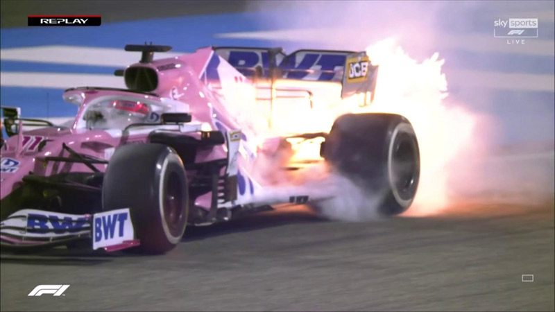 Սակայն առաջին իսկ լեփին ֆրանսացի Ռոմեն Կրոժան, որ մաս կը կազմէ «Հաաս-Ֆեռար»-ի խումբին, ունեցաւ արկած մը, որուն պատճառով անոր ինքնաշարժը ամբողջութեամբ հրդեհ առաւ:
