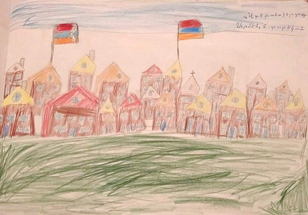 – Չէ, երբ զինուորները վերադառնան եւ մեզ խաղաղութիւն բերեն, մենք խաղաղութիւնը պինդ, շա՛տ պինդ ամրացնելու ենք մեր տան պատին, բոլոր տների բոլոր պատերին, որ տները սիրունանան, լուսաւորուեն, զարդարուեն: