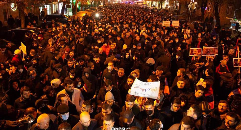 Երեւանի Արաբկիր վարչական շրջանի Վահագն Դաւթեան զբօսայգիէն երէկ երկուշաբթի, 14 դեկտեմբերին տեղի ունեցաւ Նիկոլ Փաշինեանի հրաժարականի պահանջով եւ Հայրենիքի փրկութեան շարժումին կազմակերպութեամբ բազմահազար քաղաքացիներու Արժանապատուութեան երթը: Երթին մասնակիցները պարբերաբար կոչ կ՛ուղղէին միանալու երթին, միանալու եւ ոչ ըսելու վարչապետ Նիկոլ Փաշինեանին: Անոնք կը վանկարկէին «Նիկո՛լ, հեռացի՛ր», «Նիկո՛լ, դաւաճա՛ն», «Առանց Նիկոլ Հայաստան»: