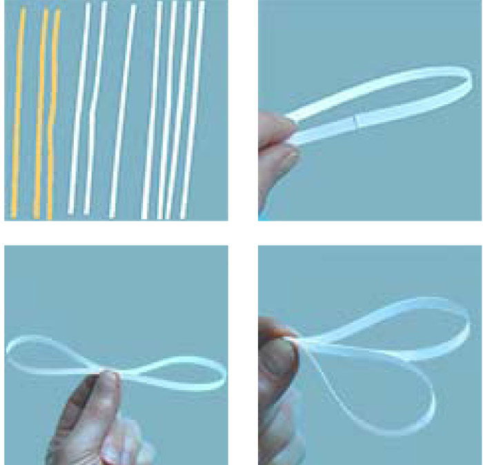 9.- Մնացած երկու երիզները փաթթելու համար կրնաս գործածել ատամնակրկիտ մը: Երիզին ծայրը դիր ատամնակրկիտին ծայրը եւ անոր շուրջ խիտ փաթթէ երիզը: Ապա զգուշօրէն հանէ ատամնակրկիտը, որպէսզի երիզը պահէ իր «օղակները»: Երիզին երկու ծայրերը փակցուր: