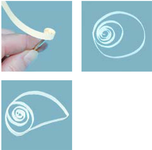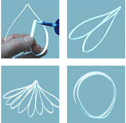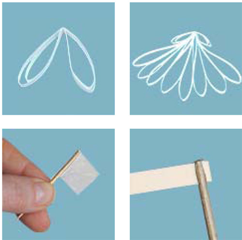 5.- Նոյն ձեւով փակցուր երեք ուրիշ երիզ: Ապա այս չորս զոյգ կաթիլները սուր ծայրէն իրարու փակցուր: