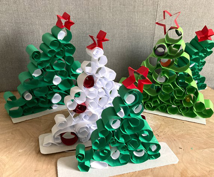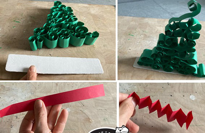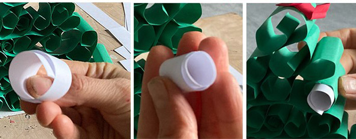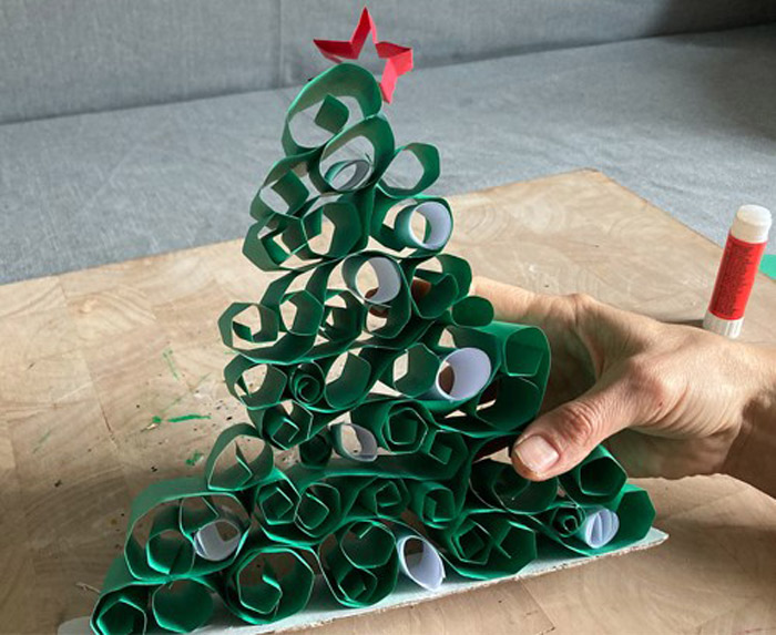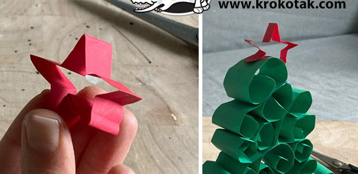 6.- Ծալքերուն հետեւելով` երիզին տուր աստղի մը ձեւը: Զայն փակցուր ծառին գագաթը: