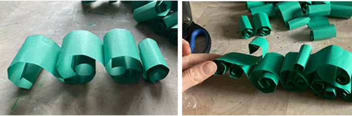 7.- Ուրիշ գոյնի թուղթով դարձեալ կտրէ քանի մը փոքրիկ երիզներ: Զանոնք փաթթէ մէկ ուղղութեամ՞բ` ստանալու համար օղակներ: