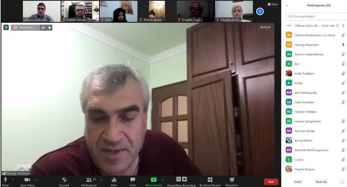 «Ազդակ»-ի առցանց 20-րդ լսարանին զեկուցեց Հայաստանի գիտութիւններու ազգային ակադեմիայի պատմութեան հիմնարկի հայկական գաղութներու եւ սփիւռքի պատմութեան բաժանմունքի վարիչ փրոֆ. Գէորգ Ստեփանեան: Նիւթ` «Ազրպէյճանական նենգափոխումները 1918-ի իրադարձութիւններուն»: