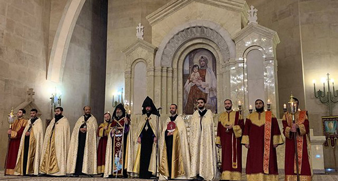 Այնուհետեւ հանրահաւաքի մասնակիցները երթով շարժեցան դէպի Երեւանի Ս. Գրիգոր Լուսաւորիչ եկեղեցի, ուր Արցախի թեմի առաջնորդ Պարգեւ արք. Մարտիրոսեանի ձեռամբ պատարագ մատուցուեցաւ` ի յիշատակ Արցախի պատերազմին զոհուած նահատակներուն: