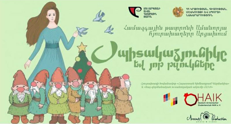 Յայտնենք, որ արցախցի փոքրիկները կարելիութիւնը ունեցան դիտելու «Սպիտակաձիւնիկը եւ եօթը թզուկները» սիրուած հեքիաթին բեմադրութիւնը: