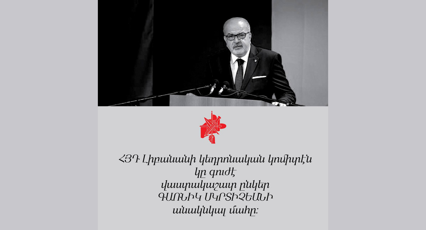 <a href="https://www.aztagdaily.com/wp-content/uploads/2021/01/136653744_3739564679398085_2241395475391705297_o.jpg"><img class="aligncenter size-full wp-image-495097" src="https://www.aztagdaily.com/wp-content/uploads/2021/01/136653744_3739564679398085_2241395475391705297_o.jpg" alt="" width="1480" height="800" /></a>Յուղարկաւորութեան արարողութիւնը տեղի պիտի ունենայ ուրբաթ, 8 յունուար 2021-ին, կէսօրուան ժամը 12:00-ին Անթիլիասի Ս. Գրիգոր Լուսաւորիչ Մայր տաճարին մէջ:
