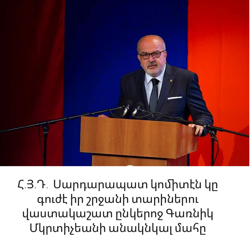 <a href="https://www.aztagdaily.com/wp-content/uploads/2021/01/135912714_1076590776100332_4529636082559581572_o.jpg"><img class="aligncenter size-full wp-image-495099" src="https://www.aztagdaily.com/wp-content/uploads/2021/01/135912714_1076590776100332_4529636082559581572_o.jpg" alt="" width="1024" height="1024" /></a>Յուղարկաւորութեան արարողութիւնը տեղի պիտի ունենայ ուրբաթ, 8 յունուար 2021-ին, կէսօրուան ժամը 12:00-ին Անթիլիասի Ս. Գրիգոր Լուսաւորիչ Մայր տաճարին մէջ:
