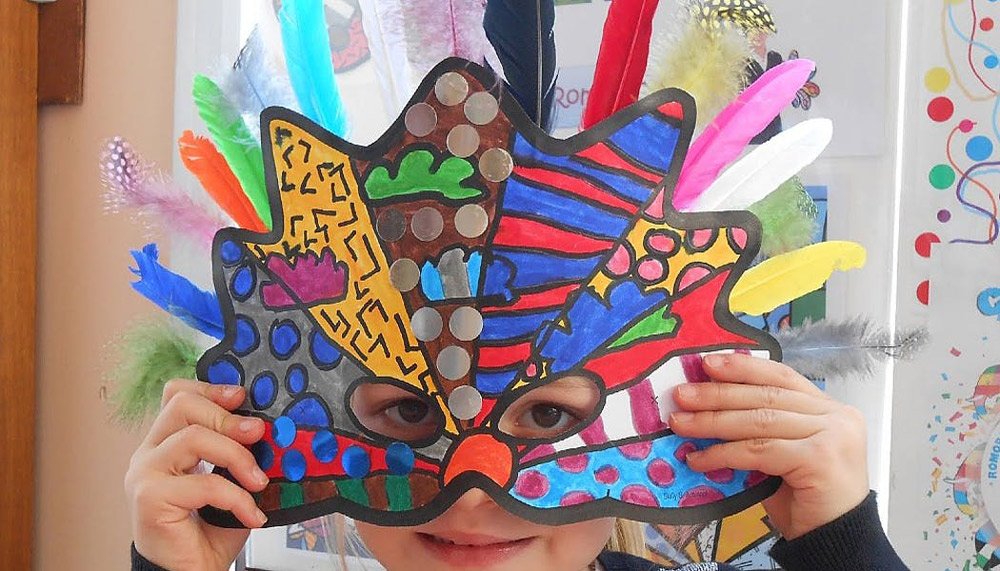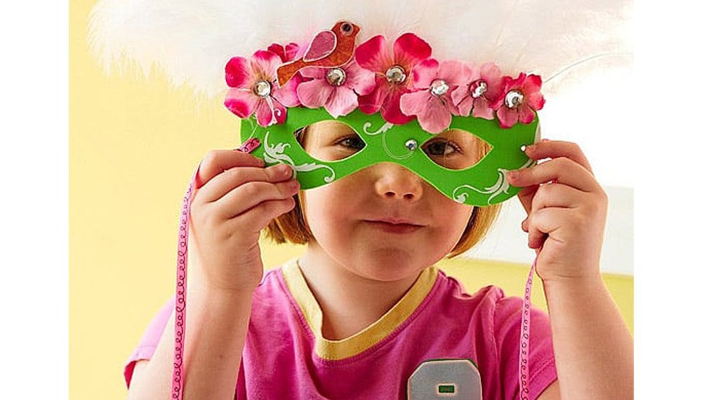 – Կրնաս նաեւ քրեփոն կամ շատ բարակ գունաւոր թուղթերով շինել ծաղիկներ եւ ստանալ գարնանային դիմակ մը: