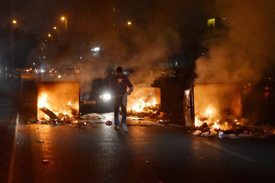 Տարբեր շրջաններու մէջ ցուցարարներ հրկիզուող անիւներով, հրկիզուող աղբամաններով եւ փայտեայ կազմածներով փորձեցին փակել ճամբաները: