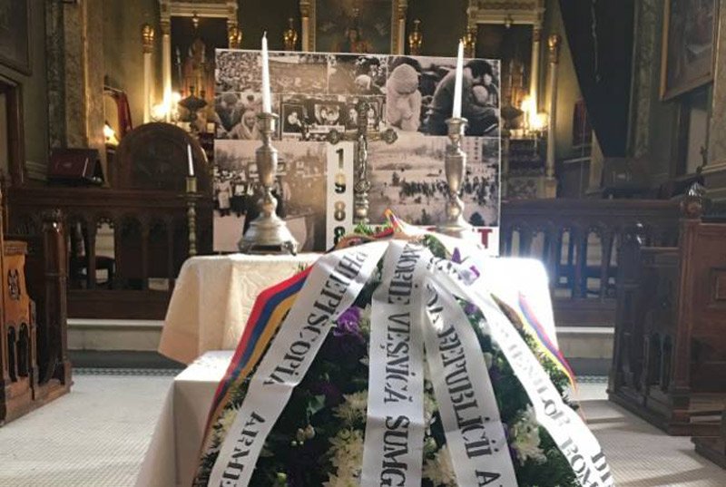 Նախաձեռնութեամբ եւ հանդիսապետութեամբ Ռումանիոյ հայոց թեմի առաջնորդ, Պուլկարիոյ հայոց թեմի առաջնորդական տեղապահ Տաթեւ եպս. Յակոբեանի, 28 փետրուարին Սումկայիթի ջարդերու 33-րդ տարելիցին առիթով Պուխարեսթի Սրբոց Հրեշտակապետաց առաջնորդանիստ մայր տաճարին մէջ տեղի ունեցաւ հոգեհանգստեան պաշտօն` բոլոր նահատակներու հոգիներուն յիշատակին: