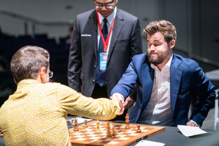 «Մելթուոթըր Չեմփիընզ Չես Թուր»-ի արագ ճատրակի «Մակնուս Քարլսըն Ինվիթէյշընըլ» մրցաշարքի քառորդ աւարտական հանգրուանի առաջին օրը, երէկ հայրենի ճատրակ խաղացող Լեւոն Արոնեան 2,5-0,5 արդիւնքով պարտութիւն մը կրեց աշխարհի նորվեկիացի գործող ախոյեան Մակնուս Քարլսընէն: