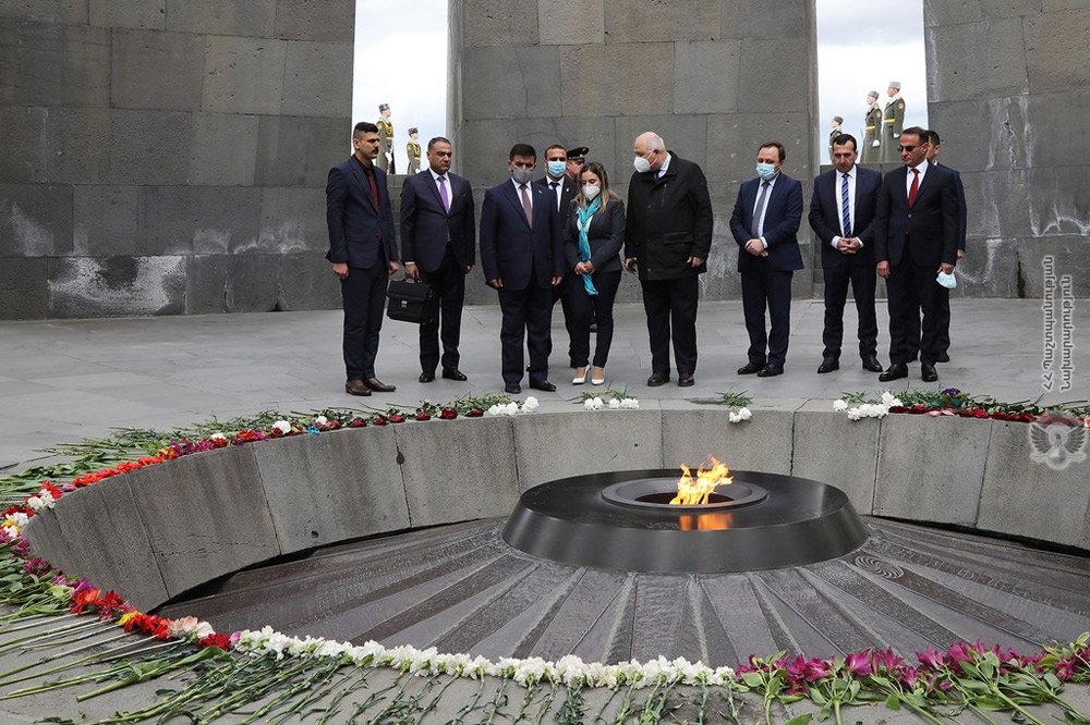 Իրաքի Հանրապետութեան պաշտպանութեան նախարարին գլխաւորած պատուիրակութիւնը 25 մարտին այցելած է նաեւ Ծիծեռնակաբերդի յուշահամալիր, յարգանքի տուրք մատուցած Հայոց ցեղասպանութեան սրբադասուած նահատակներու յիշատակին: