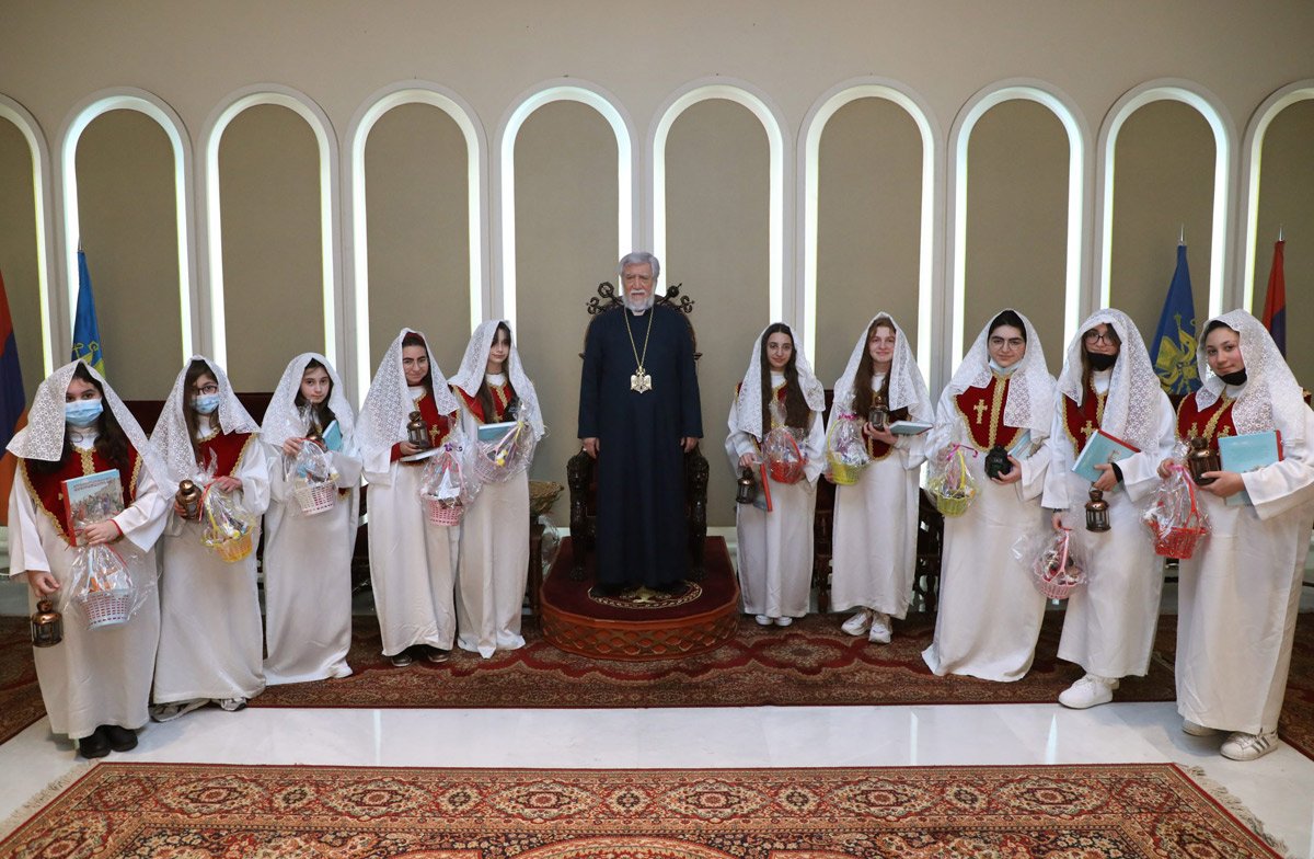 Արարողութեան աւարտին փոքրիկները բարձրացան Արամ Ա. վեհափառ հայրապետին մօտ, ուր ան հայրական սիրով ընդունեց զանոնք եւ յուշանուէրներ ու Աստուածաշունչ տալով իր օրհնութիւնը փոխանցեց: Այս առիթով վեհափառ հայրապետը իր գնահատանքը յայտնեց Կիրակնօրեայի տեսչութեան, ուսուցչական կազմին, ինչպէս նաեւ աշակերտներու ծնողներուն, որոնք նախանձախնդիր քրոստոնէական հաւատքին` Կիրակնօրեայ վարժարան կ՛ուղարկեն իրենց զաւակները, որպէսզի քրիստոնէական կրթութիւն ստանան եւ հոգեւոր ու բարոյական արժէքներով ուռճանան եւ լիցքաւորուին: