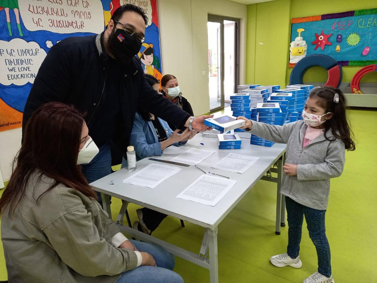 Այսպիսով վարժարանի այն աշակերտները, որոնք թապլեթ-ներու չգոյութեան պատճառով դժուարութիւն կ՛ունենային հետեւելու առցանց դասաւանդութեան, ունեցան իրենց սեփական գործիքները: