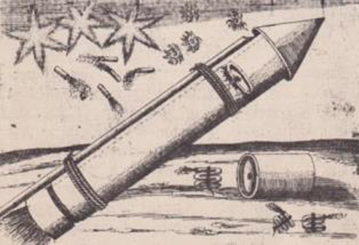 Առաջին «հրթիռները» կը յայտնուին Չինաստանի մէջ, 13-րդ դարուն: Անոնք կը բանին շնորհիւ թնդանօթի «փոշիին»` վառօդին, որ այրելով` պայթում մը կը յառաջացնէ: Պայթիւնին ուժը կարելիութիւնը կու տայ, որ հրթիռը գետնէն բարձրանայ: Սակայն այս հրթիռները բաւականաչափ զօրաւոր չեն հասնելու համար անջրպետ, հետեւաբար անոնք կը գործածուին իբրեւ զէնք:
