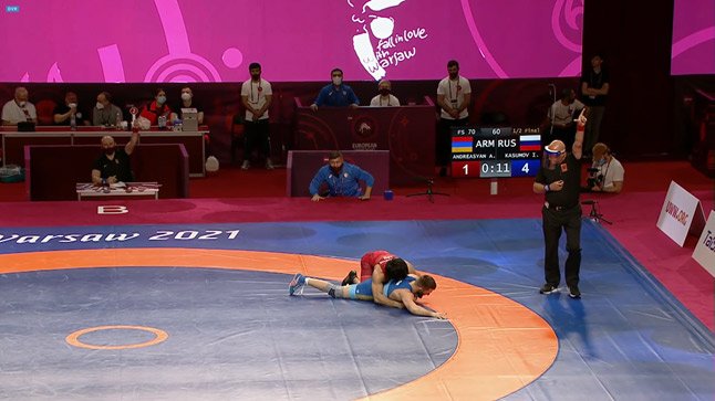 Երկու յաղթանակ արձանագրելէ ետք, հայրենի ըմբիշը կիսաւարտականին պարտութիւն մը կրեց ռուս Իսրայիլ Քասումովէն` 5-3 արդիւնքով: