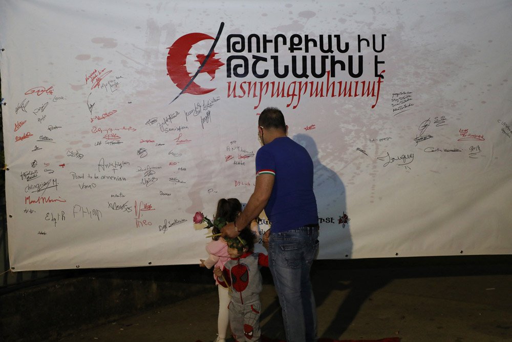 Աւարտին երիտասարդները հրկիզեցին Թուրքիոյ դրօշը` իբրեւ բողոքի արտայայտութիւն թրքական հակահայ քաղաքականութիւններուն եւ անմարդկային ոճիրներուն: