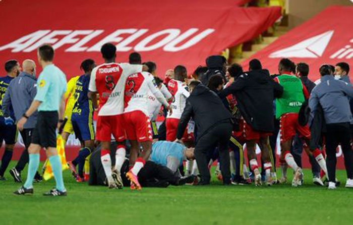 Մոնաքոյի եւ Լիոնի միջեւ տեղի ունեցած մրցումը աւարտեցաւ զանգուածային բախումով: