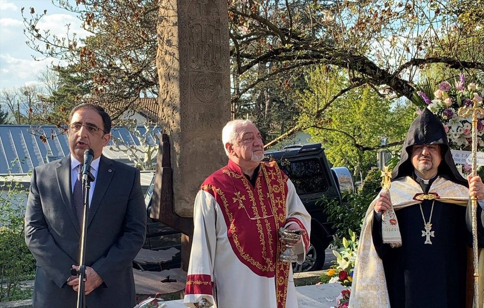 25 ապրիլին հանդիսապետութեամբ թեմի առաջնորդին, առաջնորդանիստ մայր եկեղեցւոյ բակին մէջ տեղադրուած խաչքարին դիմաց կատարուեցաւ բարեխօսական կարգ, որուն յաջորդեց ծաղկեպսակներու զետեղում: