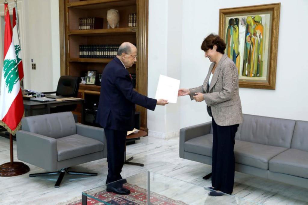 Հանրապետութեան նախագահ զօր. Միշել Աուն շաբաթավերջին նախագահական պալատին մէջ ընդունեց Լիբանանի մէջ Ֆրանսայի դեսպան Անն Կրիոն, որուն յանձնեց գրաւոր նամակ մը` ուղղուած Ֆրանսայի նախագահ Էմանուէլ Մաքրոնին:
