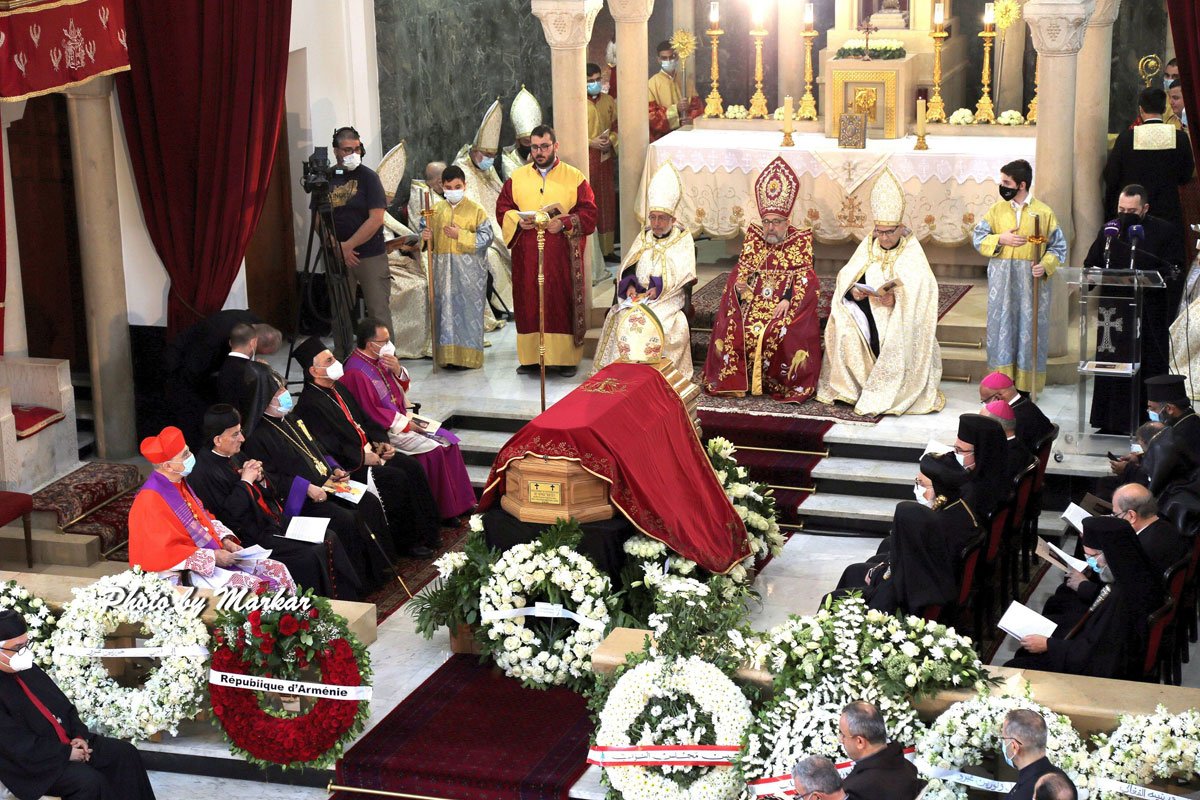 Յուղարկաւորութիւնը կատարուեցաւ հանդիսապետութեամբ Հայ կաթողիկէ պատրիարքութեան ընդհանուր կառավարիչ, Բերիոյ հայ կաթողիկէ թեմի առաջնորդ Պետրոս արք. Միրիաթեանի: Յուղարկաւորութեան արարողութեան մասնակցեցան Մեծի Տանն Կիլիկիոյ Արամ Ա. կաթողիկոս, մարոնի եկեղեցւոյ Պշարա Ռայի պատրիարքը, ինչպէս նաեւ տարբեր համայնքներ ներկայացնող հոգեւորականներ: Վերջին օծման արարողութիւնը տեղի ունեցած էր ուրբաթ, 28 մայիսին, Հայ կաթողիկէ պատրիարքարանի Ս. Աւետման եկեղեցւոյ մէջ:
