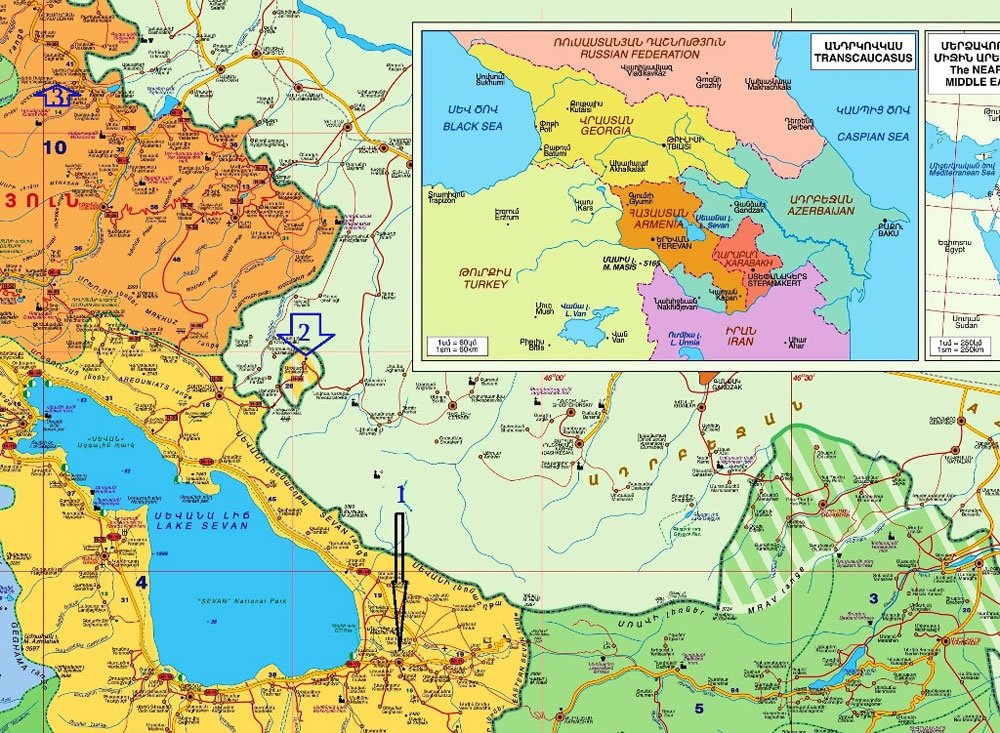 ԹԻՒ 3 քարտէսի մէջ կ՛երեւին Գեղարքունիք եւ Տաւուշի սահմանային եւ «ներքին» այն շրջանները, որոնք կիզակէտը դարձած են նորագոյն բանավէճին: Նախ նշենք, որ թիւ 1 սլաքը ցոյց կու տայ Վարդենիսը, որ տարիներ առաջ դուրս եկաւ քարտէսներու դարակներէն, երբ «Հայաստան» համահայկական հիմնադրամը օրուան իշխանութիւններուն հետ հռչակեց Վարդենիս-Մարտակերտ ռազմավարական ճամբու ծրագիրը, զայն իրականացուց համայն հայութեան ճիգերով եւ ներդրումով: Այդ ճամբան Քարվաճառի` Ազրպէյճանին «նուէր տրուելուն» պատճառով, մտաւ ազերիական գրաւման տակ: Նոյն Վարդենիսին արեւելեան սահմաններուն վրայ եւս արձանագրուեցան ազերիական թափանցումներ, հետեւեցան հեռացումի հաւաստիքներ: Ի դէպ, այս շրջանէն ներս թափանցումին հատատման առիթով էր, որ հրաժարեալ վարչապետը խոստովանեցաւ, որ Հայաստանի հողերուն վրայ կան ո՛չ միայն 250 զինուորներ, այլ` 500-600 զինուորներ: Հիմա պաշտպանութեան նախարարութիւնը կը հերքէ այն լուրերն ու տարաձայնութիւնները, թէ աւելի քան հազար ազերի զինուորներ կան Հայաստանի հողին վրայ, իսկ իրողապէս գրաւեալ տարածութիւններուն մասին յստակ տեղեկութիւն չկայ: