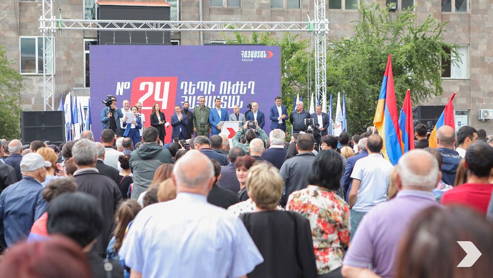 Երէկ` երեքշաբթի, 8 յունիսին, Գորիսի մէջ տեղի ունեցաւ «Հայաստան» դաշինքի կազմակերպած նախընտրական հանրահաւաքը, որուն ընթացքին Հայաստանի Հանրապետութեան 2-րդ նախագահ եւ դաշինքի վարչապետի թեկնածու Ռոպերթ Քոչարեան յայտարարեց. «Մենք յառաջիկային ունինք ճակատագրական իրադարձութիւն, բայց այս ընտրութիւններուն մեր մասնակցելու նպատակը զուտ խումբի փոփոխութիւնը չէ եւ առհասարակ` այս ընտրութիւնները անձերու վերաբերեալ չեն: Այս ընտրութիւնները ունին իւրայատկութիւն, որ հետեւեալն է` մենք կ՛ուզե՞նք ունենալ անվտանգ երկիր, թէ՞ կ՛ուզենք ծնրադիր ապրիլ, մենք կ՛ուզե՞նք ունենալ թռիչքաձեւ, աճող տնտեսութիւն, թէ՞ մենք կ՛ուզենք, որ շարունակէ աճիլ գործազրկութիւնը, աղքատութիւնը եւ արտագաղթը, մենք կ՛ուզե՞նք ներքին համերաշխութիւն, կայունութիւն, թէ՞ կ՛ուզենք, որ շարունակուի ատելութեան մթնոլորտը: Այս երկընտրանքին առջեւ կանգնած է այսօր մեր երկիրը, եւ ընտրութիւնը անոր շուրջ է, ոչ թէ անձերու, քաղաքական ուժերու եւ միաւորներու», ըսաւ Ռոպերթ Քոչարեան: