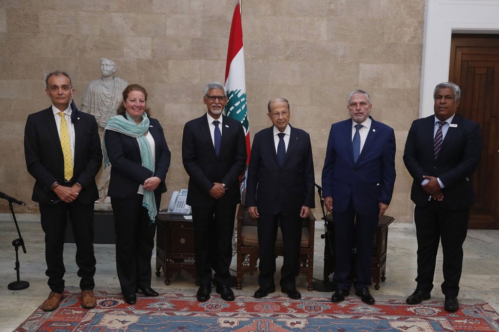 Նախագահ Աուն նկատել տուաւ, որ Միջին Արեւելքի ու Հիւսիսային Ափրիկէի երկիրներուն մէջ Կարմիր խաչի ու Կարմիր մահիկի միութիւններու միջազգային համադաշնակցութեան գրասենեակին Պէյրութ գտնուիլը կը փաստէ համադաշնակցութեան վստահութիւնը` Լիբանանին եւ շրջանին ու աշխարհին մէջ անոր դերակատարութեան նկատմամբ: