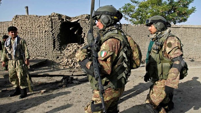 Իտալիան Միացեալ Նահանգներու, Թուրքիոյ, Բրիտանիոյ եւ Գերմանիոյ կողքին կը նկատուի Աֆղանիստանի մէջ ամէնէն շատ ներկայ արեւմտեան ուժերէն մէկը, որուն այդ երկրին մէջ 2001-ին տեղակայուած ուժերուն թիւը կը հասնէր շուրջ 50 հազարի, զոհերուն թիւը` 53-ի, իսկ վիրաւորներունը` 723-ի: