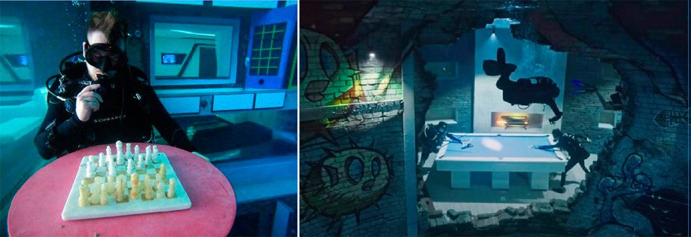Իւրաքանչիւրի մակարդակին համաձայն, սուզուողները կրնան իջնել իրենց ուզած խորութիւնը, եւ մասնակցիլ առաջարկուած տարբեր ժամանցներուն` հեծիկ, պէյպի ֆութ… Վայրը ամբողջովին ապահով է եւ օժտուած ընդծովեայ 56 քամերաներով. սակայն լողաւազանը հսկայական աքուարիոմ մը չէ, որովհետեւ հոն չեն ապրիր ծովային անասուններ: