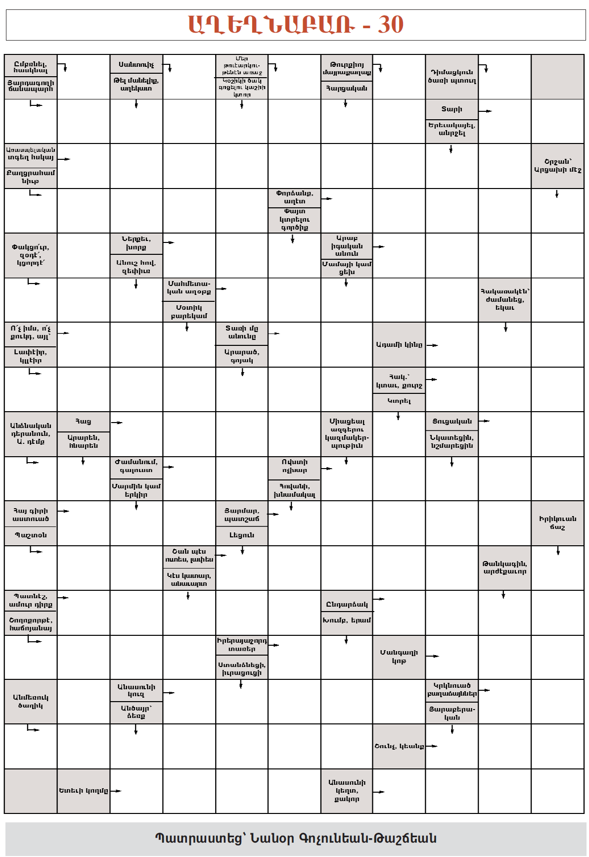 Պատրաստեց՝ <strong>ՆԱՆՕՐ ԳՈՉՈՒՆԵԱՆ-ԹԱՇՃԵԱՆ</strong> <a href="https://www.aztagdaily.com/wp-content/uploads/2021/07/agheghnapar-tiv-30.png"><img class="aligncenter size-full wp-image-516754" src="https://www.aztagdaily.com/wp-content/uploads/2021/07/agheghnapar-tiv-30.png" alt="" width="1191" height="1732" /></a>