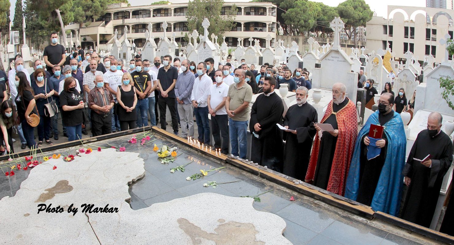 Լիզպոնի հերոսներու դամբարանին դիմաց տեղի ունեցաւ հոգեհանգստեան արարողութիւն, որմէ ետք ոգեկոչման հանդիսութիւնը սկսաւ Լիբանանի եւ Հայաստանի քայլերգներուն ունկնդրութեամբ: