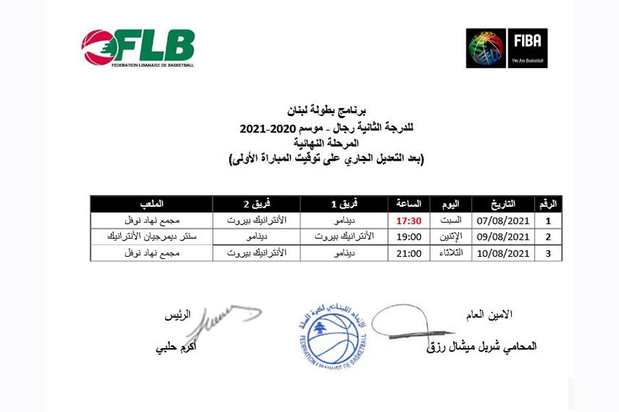 Լիբանանի պասքեթպոլի տղոց Բ. դասակարգի ախոյեանութեան աւարտական հանգրուանի մրցումներուն ծիրին մէջ, այսօր կը կատարուի Տինամօ-Անդրանիկ Պէյրութ առաջին մրցումը: