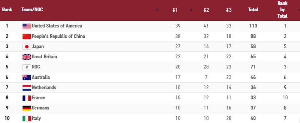 Լաւագոյն եռեակը ամբողջացուց հիւրընկալ երկիրը` Ճափոն (27 ոսկի, 14 արծաթ եւ 17 պրոնզ):