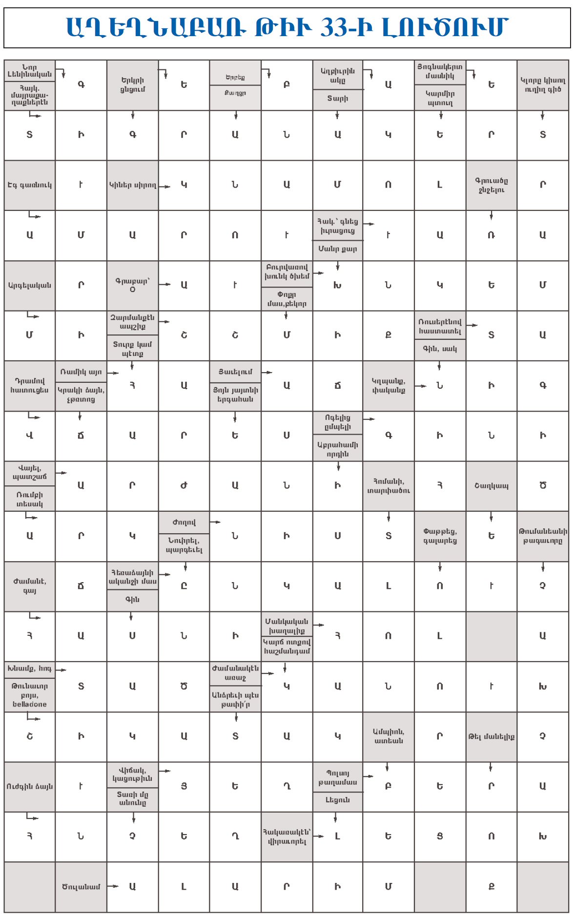 Պատրաստեց՝ <strong>ՆԱՆՕՐ ԳՈՉՈՒՆԵԱՆ-ԹԱՇՃԵԱՆ</strong> <a href="https://www.aztagdaily.com/wp-content/uploads/2021/08/agheghnapar-tiv-33_loudzoum.jpg"><img class="aligncenter size-full wp-image-519736" src="https://www.aztagdaily.com/wp-content/uploads/2021/08/agheghnapar-tiv-33_loudzoum.jpg" alt="" width="1174" height="1884" /></a>